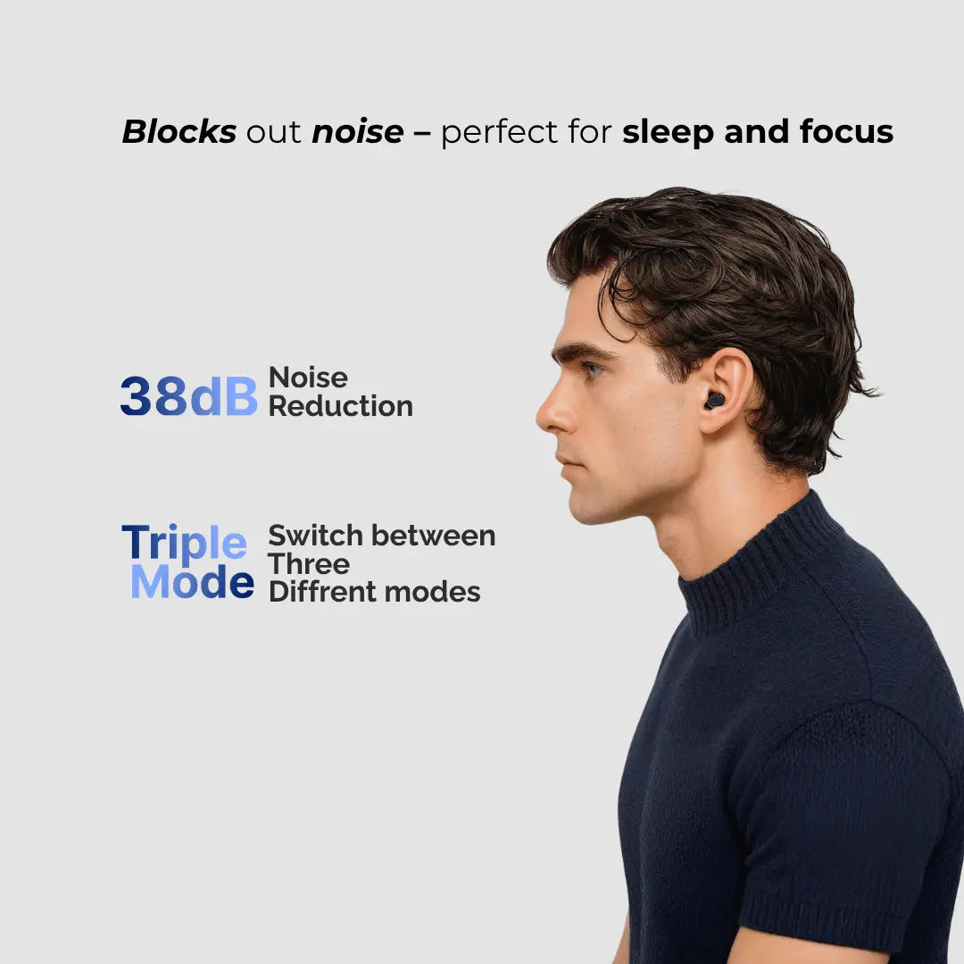 Nuvia earplugs feature our unique Triple Mode System, letting you switch between three levels of noise reduction for any environment — from deep focus to conversations. Paired with eco-friendly silicone gel, they deliver unmatched comfort, durability, and versatility.